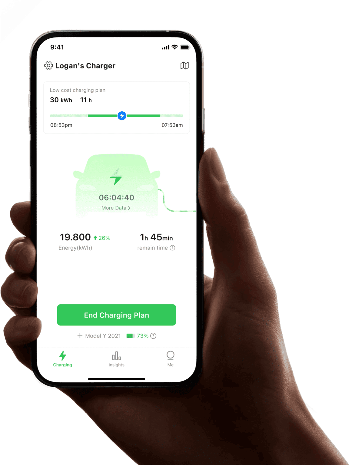 Up to a maximum of 50A,creating 12 kW of power for increased charging speed. Up to 9X faster than a traditional AC home charger. Can be adjusted through a hardware switch or the App.