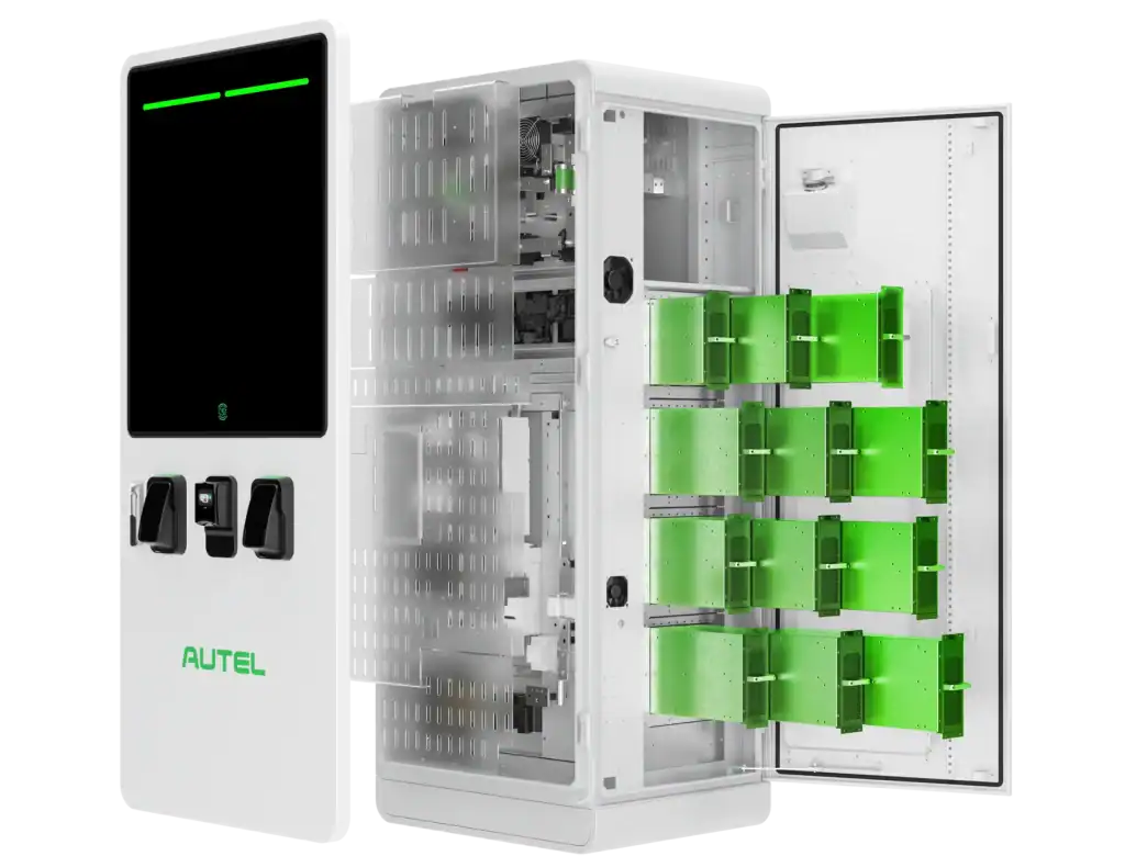 A modular DC fast charger for gas stations, dealerships, feets, and more. Features customizable 60-240 kW power output. OCPP compliant. Connectors for every vehicle. Engineered by Autel.